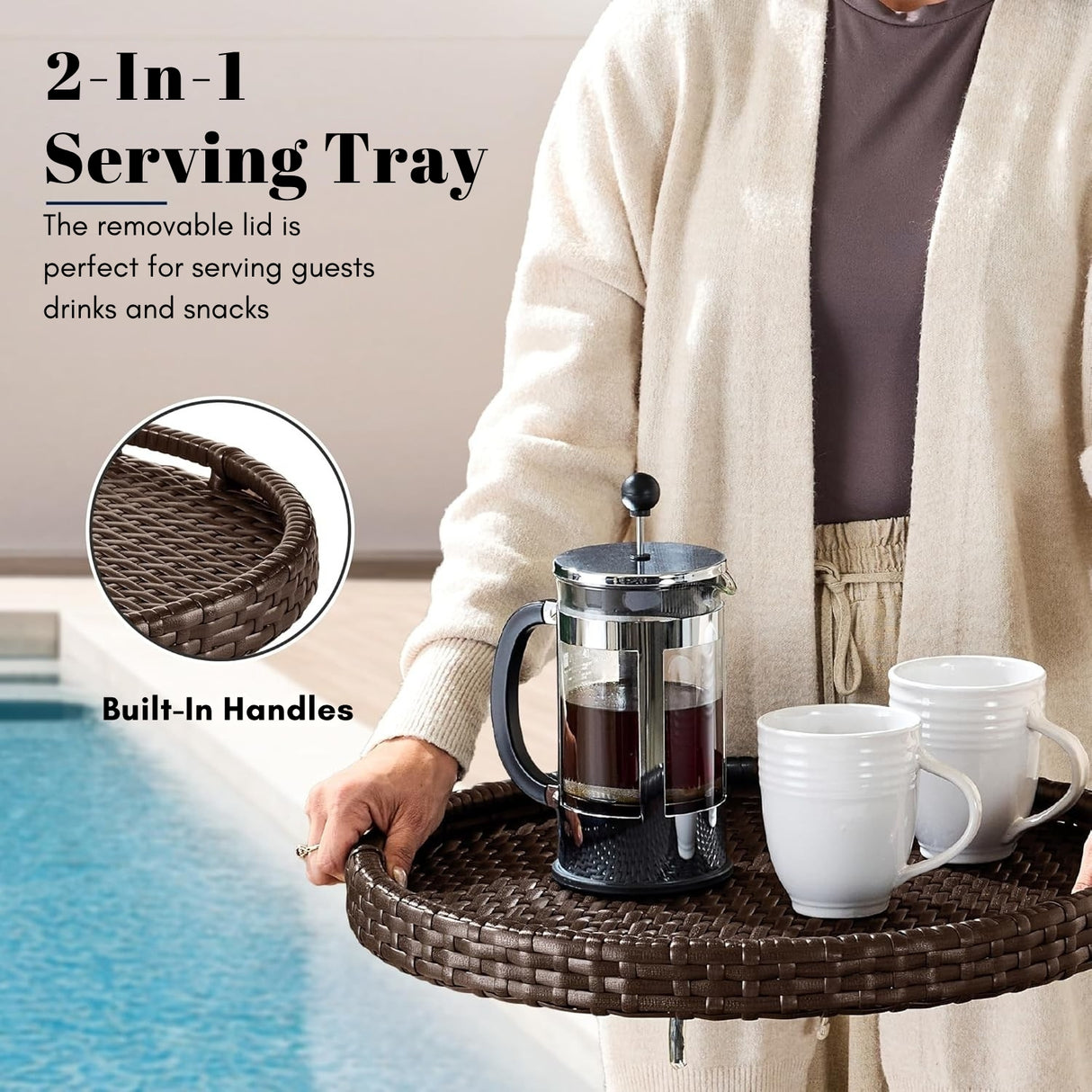 Elevate your outdoor living with this beautifully handwoven round wicker ottoman a perfect blend of style, comfort, and functionality. Designed for patios, backyards, balconies, and garden spaces, this multipurpose ottoman is more than just a decorative accent it’s a smart, space-saving addition to any outdoor setup. Crafted with all-weather PE rattan over a strong powder-coated metal frame, this round ottoman offers year-round durability, resisting UV rays, moisture, and rust. The woven texture adds a touch of natural elegance, while the neutral tones easily complement various outdoor furniture styles. The cushioned top, made with water-resistant fabric, provides exceptional comfort and is removable for easy cleaning and storage. Beneath the cushioned seat lies a hidden storage compartment, perfect for tucking away outdoor essentials like throws, cushions, magazines, or small garden tools. Use it as a comfortable extra seat during gatherings, a cozy footrest while lounging, or a convenient side table by simply removing the cushion and placing a tray on top. This round wicker ottoman adapts to your needs with ease, making it an ideal multifunctional companion for compact or expansive outdoor spaces.