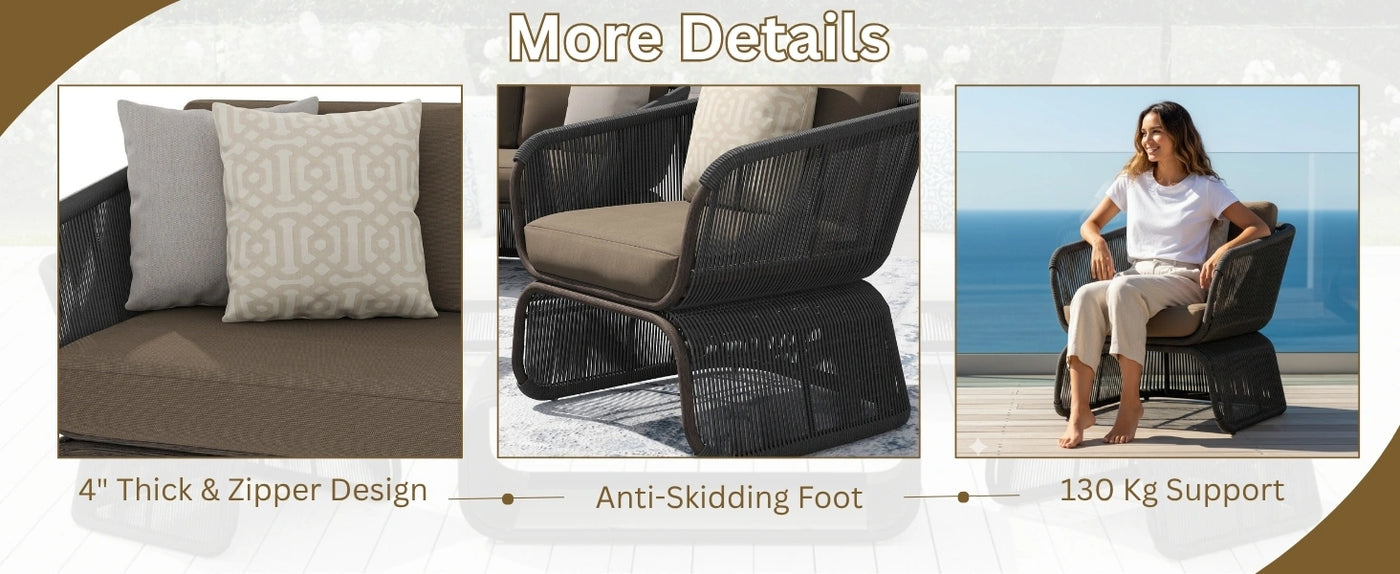 - All-Weather Resilience : UV-resistant rope and water-resistant cushions withstand sun, rain, and outdoor elements.