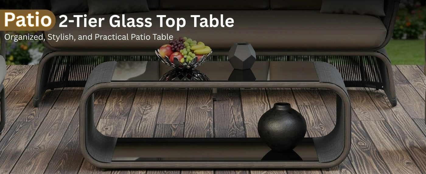 - 2-Tier Glass Top Table : Glass surface provides a stable, stylish top, with a lower shelf for extra storage.