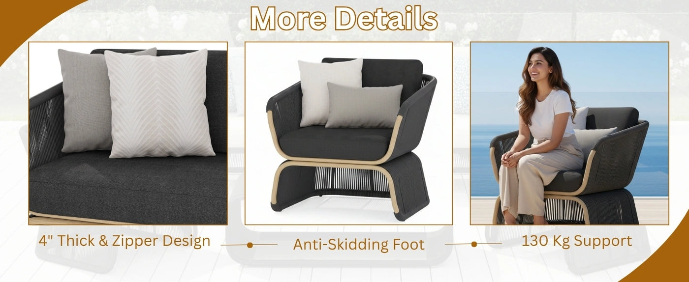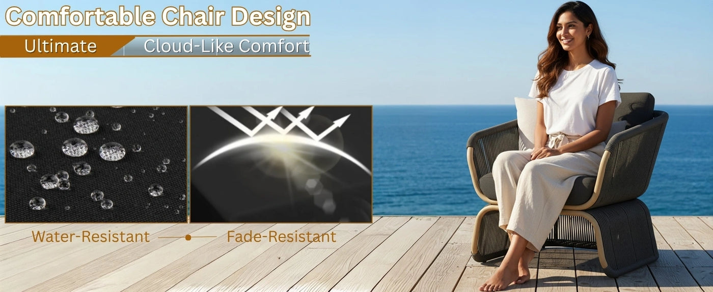 - All-Weather Resilience : UV-resistant rope and water-resistant cushions withstand sun, rain, and outdoor elements.