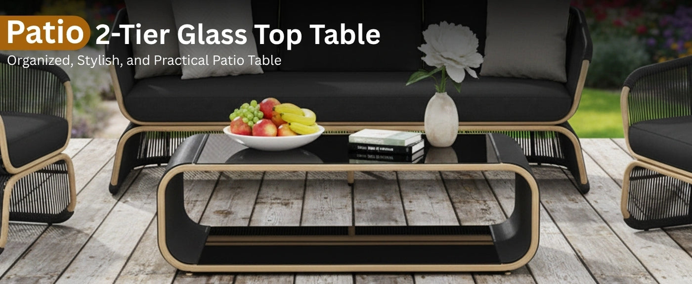 - 2-Tier Glass Top Table : Glass surface provides a stable, stylish top, with a lower shelf for extra storage.